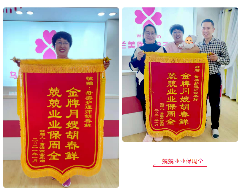 手捧錦旗的胡春鮮動(dòng)容的說:“這本就是我的分內(nèi)工作,是因?yàn)?lsquo;米勒媽媽’(寶媽)的活潑開朗,讓我們相處的更加融洽,也讓我的工作更好的開展!與此同時(shí)更要感謝烏蘭美醫(yī)養(yǎng)月子中心給我提供了事業(yè)發(fā)展的平臺(tái),感謝我的每一位老師對(duì)我的幫助和指導(dǎo),感謝大家給予我家一般的關(guān)懷和溫暖”。